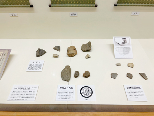 出品されているのは瓦塔片(がとうへん・五重塔をかたどった焼き物)、瓦、須恵器。