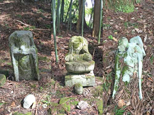 そしてちょっと注意して見て欲しいのが、このお堂の前にある広場に置かれている3体の石仏。