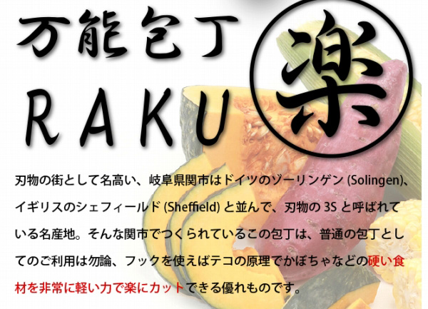 万能包丁/調理器具 【刃渡り17cm 重さ100g】 日本製 硬いもの対応用フック付き 『楽 RAKU』 〔台所 キッチン〕